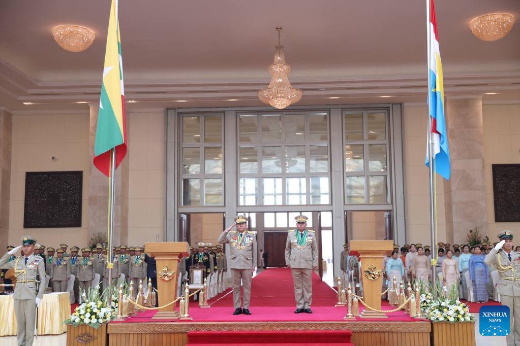 The handover ceremony of the commander-in-chief of defence services is held in Nay Pyi Taw, Myanmar, March 30, 2026. Ye Win Oo has been appointed Myanmar's commander-in-chief of defence services, military-owned Myawady TV reported on Monday. (Photo: Myanmar's Ministry of Information/Handout via Xinhua)