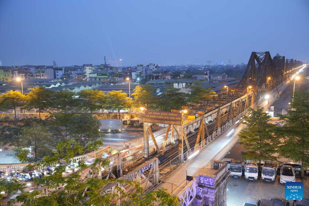 This photo taken on April 9, 2025 shows a view of Long Bien Bridge, a historic bridge across the Red River, in Hanoi, Vietnam. (File photo: Xinhua)