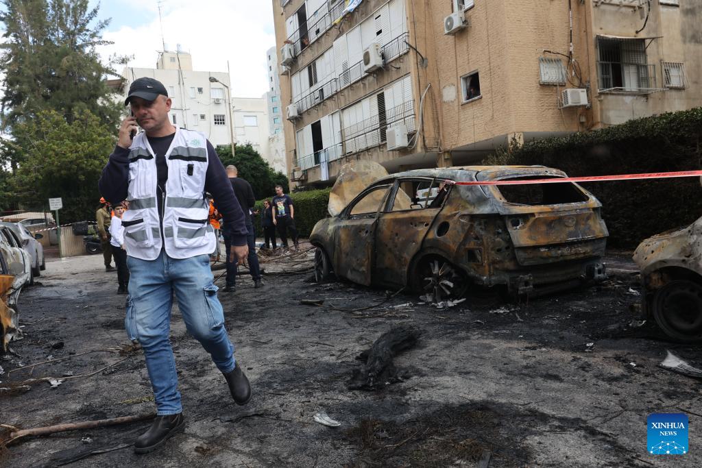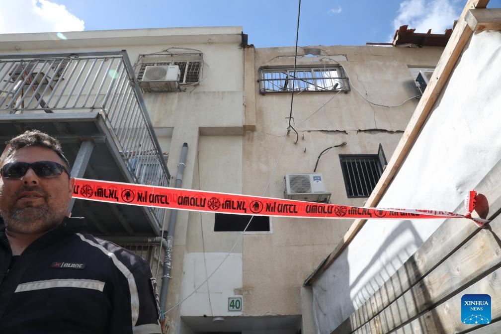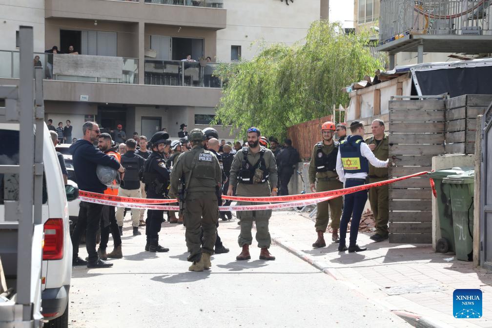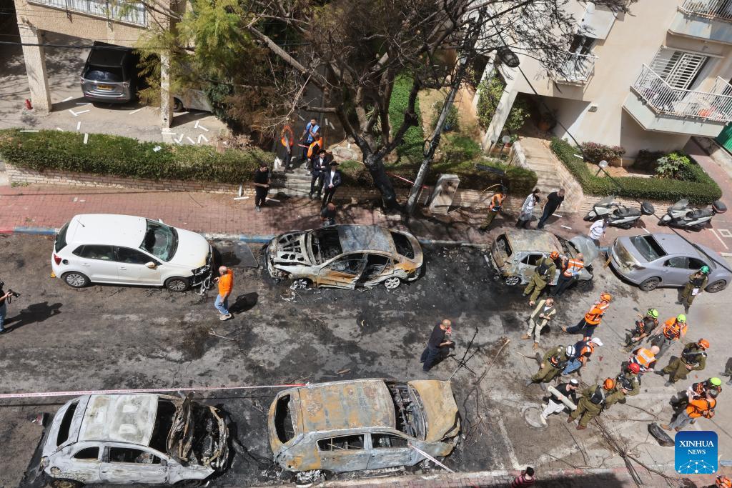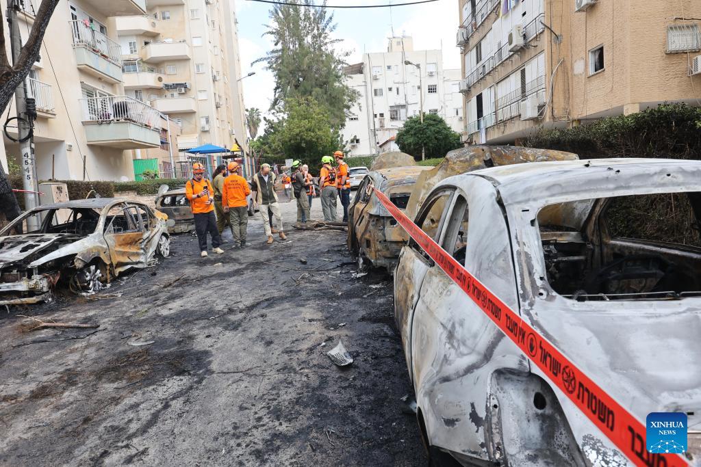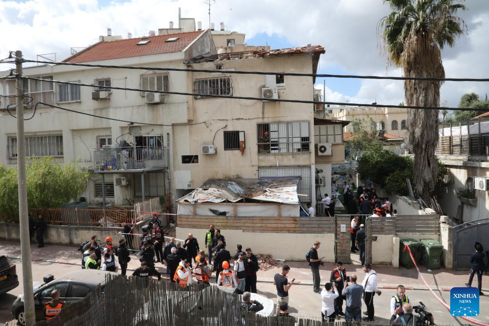 Israeli security forces and emergency responders work at the scene of a missile attack in Petah Tikva, central Israel, March 31, 2026. (Photo by Gil Cohen Magen/Xinhua)