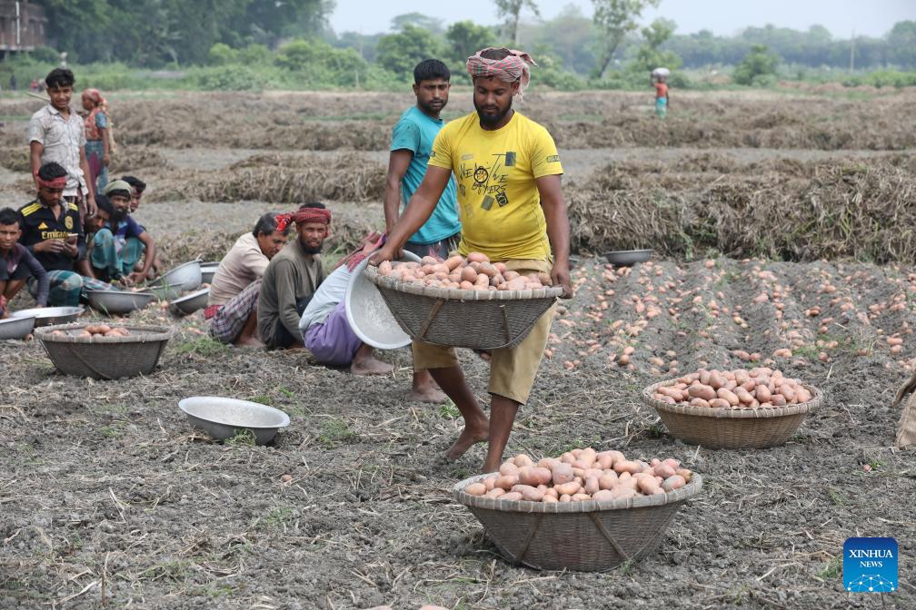Farmers harvest potatoes in Munshiganj on the outskirts of Dhaka, Bangladesh, April 1, 2026. Potato production plays an important role in the country's food supply. (Photo by Habibur Rahman/Xinhua)
