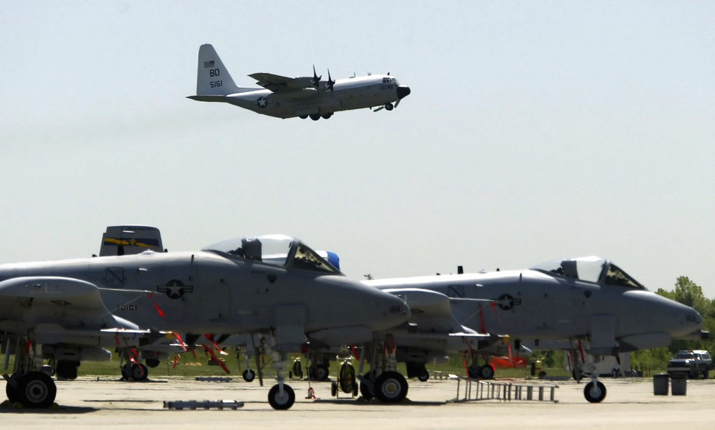 In this May 13, 2004 file photo, A-10's from the 111th Fighter Wing are seen in the foreground as a U.S. Navy C-130 takes off from N.A.S. J.R.B. Willow Grove in Willow Grove Pa. (Photo: AP)