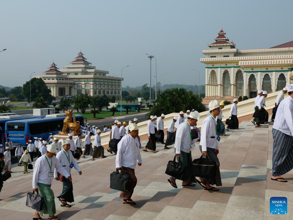 Members of Myanmar's Union Parliament arrive for the second day meeting of the first regular session of the Union Parliament in Nay Pyi Taw, Myanmar, April 2, 2026. Myanmar's Union Parliament announced on Thursday that it will elect the country's president on Friday, with three vice presidents having passed the scrutiny of presidential candidate qualifications. (Photo: Xinhua/Myo Kyaw Soe)