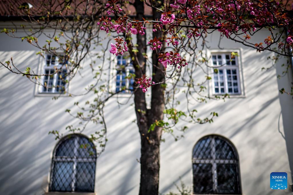 Cherry blossoms are seen at the Castle Hill in Budapest, Hungary, April 2, 2026. (Photo by David Balogh/Xinhua)