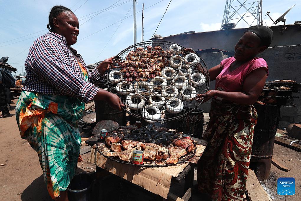 Women process smoked fish in Abidjan, Cote d'Ivoire, April 3, 2026. Along the coastline of Abidjan, fishing is closely intertwined with local community life. (Photo by Yvan Sonh/Xinhua)