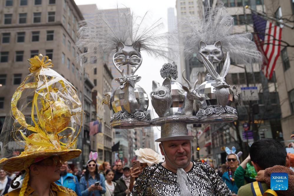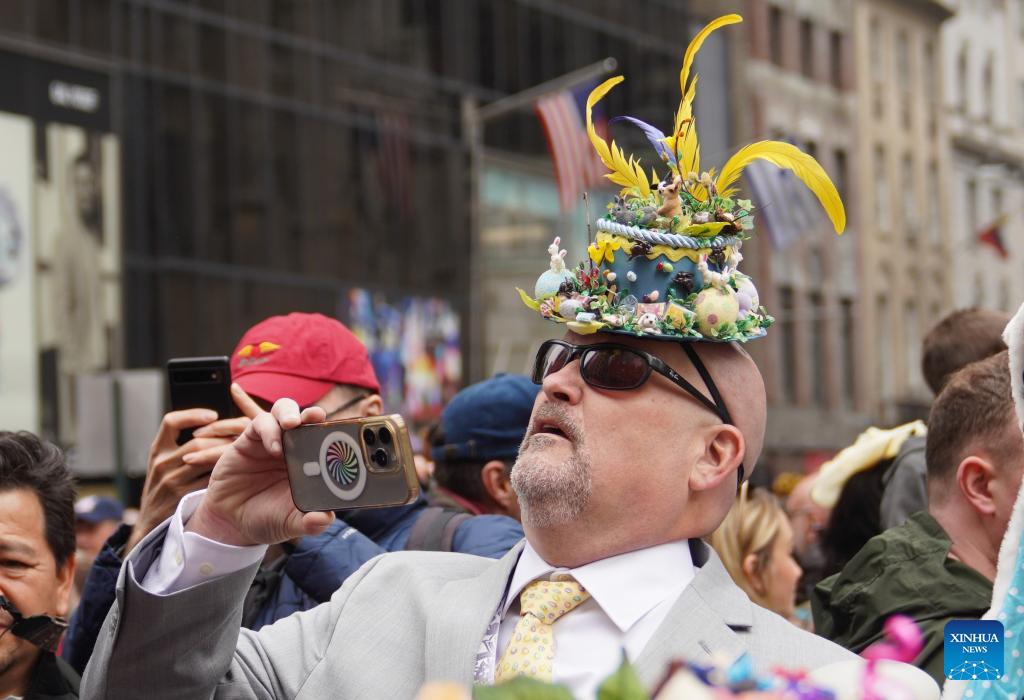 A man attends the Easter Parade and Bonnet Festival in New York, the United States, on April 5, 2026. The annual Easter Parade and Bonnet Festival was held in New York City on Sunday, attracting thousands of visitors to see extravagant, hand-crafted hats to celebrate Easter and greet spring. (Xinhua/Zhang Fengguo)