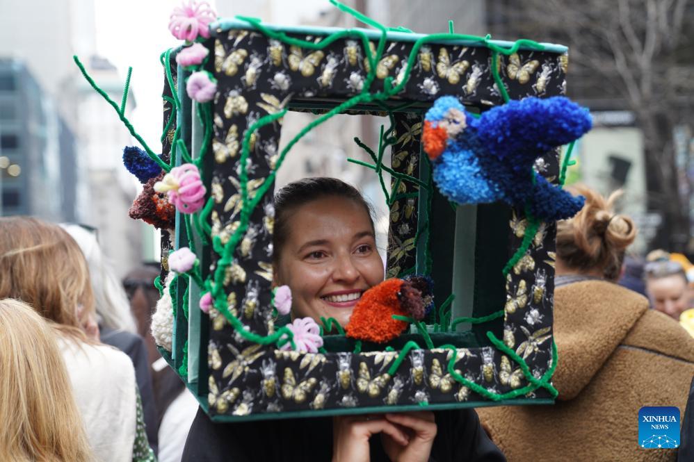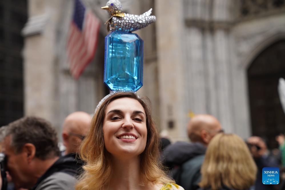 People attend the Easter Parade and Bonnet Festival in New York, the United States, on April 5, 2026. The annual Easter Parade and Bonnet Festival was held in New York City on Sunday, attracting thousands of visitors to see extravagant, hand-crafted hats to celebrate Easter and greet spring. (Xinhua/Zhang Fengguo)