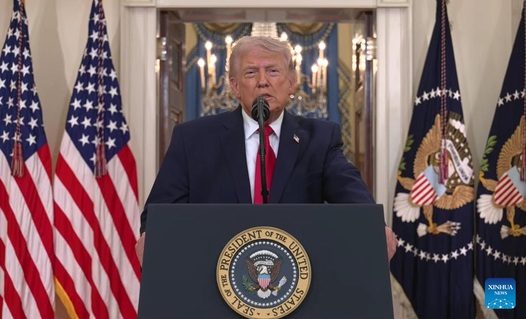 This video snapshot shows U.S. President Donald Trump giving an address to the nation at the White House in Washington, D.C., the United States, April 1, 2026. (File photo: Xinhua)