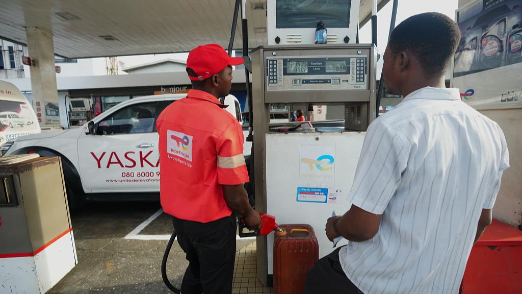 An employee fills a can with fuel at a petrol station in Lagos, Nigeria, March 23, 2026. (Photo: VCG)