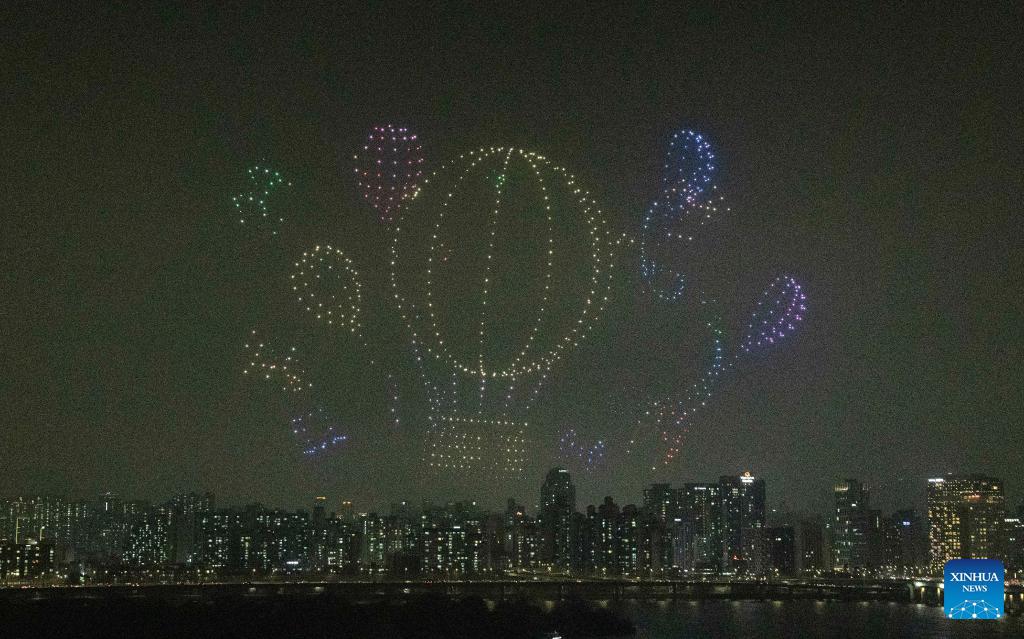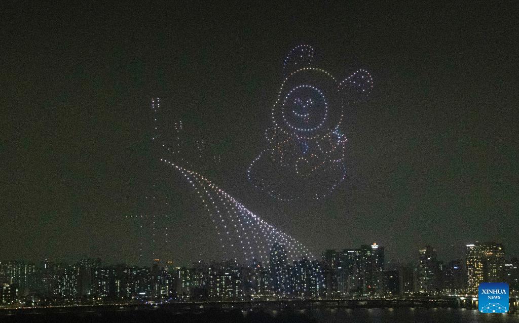 Drone light show staged at Yeouido park in Seoul, S. Korea