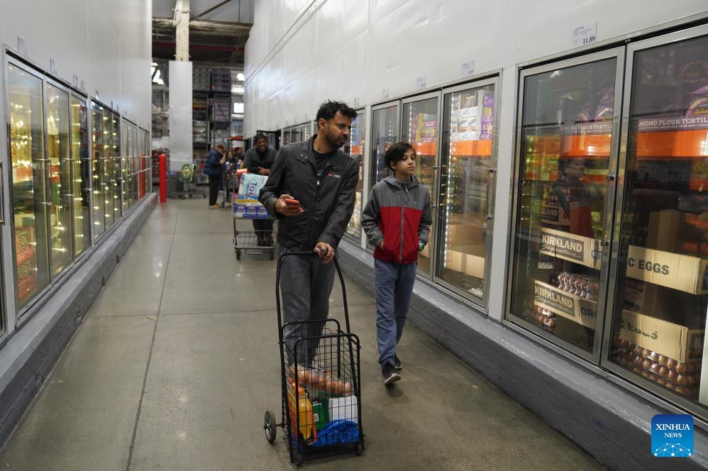 People shop at a supermarket in New York, the United States, on April 10, 2026. Earlier on Friday, the U.S. Bureau of Labor Statistics reported that the consumer price index in March rose 0.9 percent month on month and 3.3 percent year on year, with most of the increase coming from the surge in energy prices. (Xinhua/Zhang Fengguo)