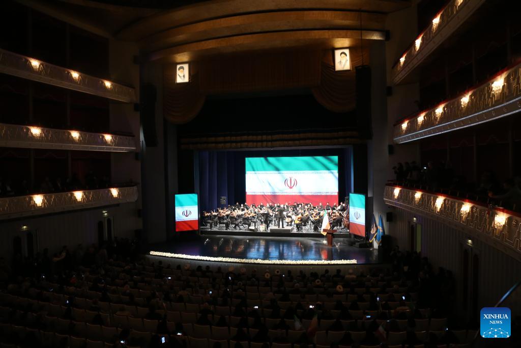 An activity is held to mourn the death of Iran's late Supreme Leader Ali Khamenei in Tehran, Iran, April 12, 2026. (Xinhua/Shadati)