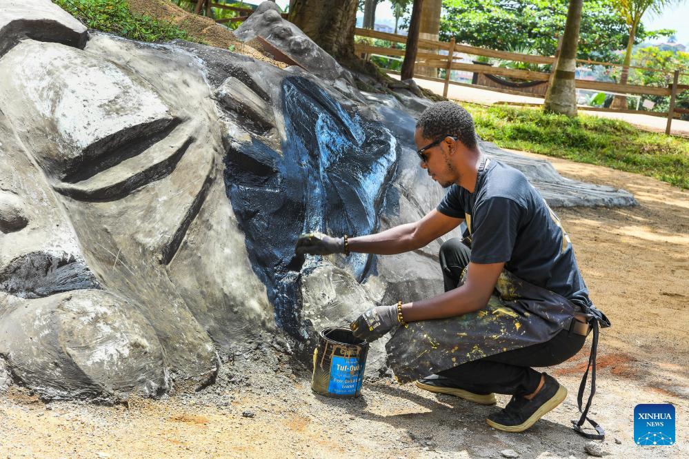 Sculptor Patrick Ndzana creates an artwork in Yaounde, Cameroon, April 14, 2026. World Art Day falls on April 15 every year. (Photo by Kepseu/Xinhua)