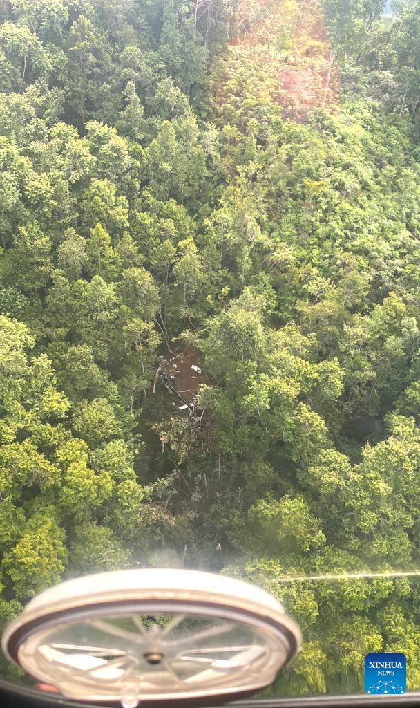 This photo provided by Indonesia's National Search And Rescue Agency (Basarnas) shows debris of a helicopter which crashed in Sekadau regency in West Kalimantan province, Indonesia, April 16, 2026. (Photo: Xinhua)