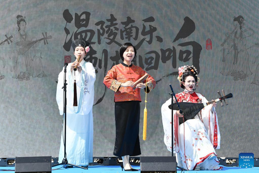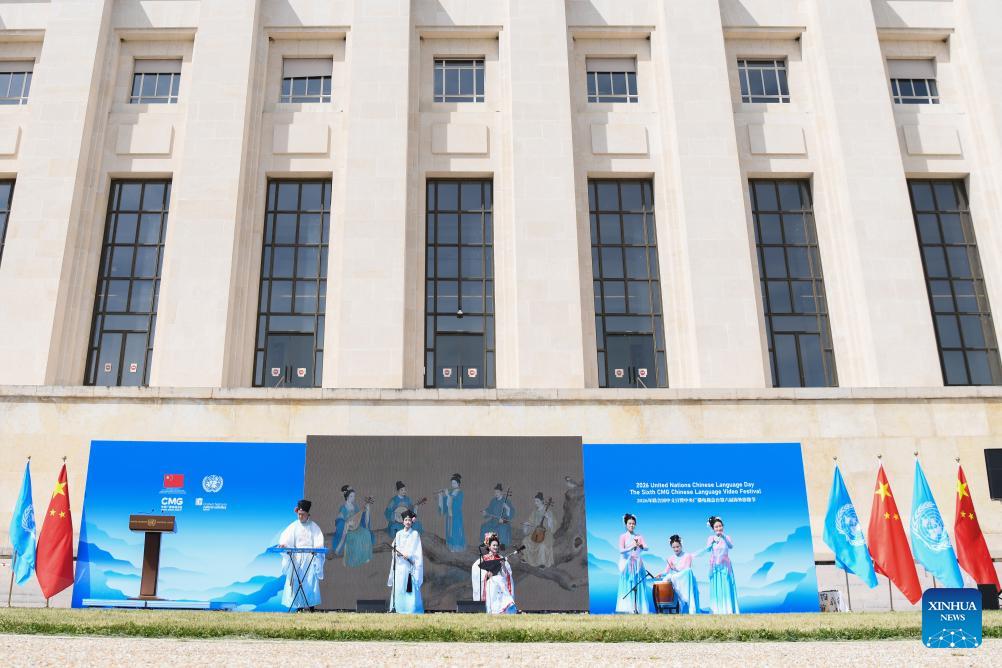 Artists perform Nanyin, a traditional musical form from southeast China's Fujian Province, at the Palais des Nations in Geneva, Switzerland, April 17, 2026. A celebration marking the 2026 United Nations Chinese Language Day was held on Friday. The event drew some 400 participants, notably officials from international organizations and diplomats from over 30 countries such as Georgia, Laos, Mexico, Pakistan, Thailand, Uzbekistan, and Vietnam. (Xinhua/Lian Yi)