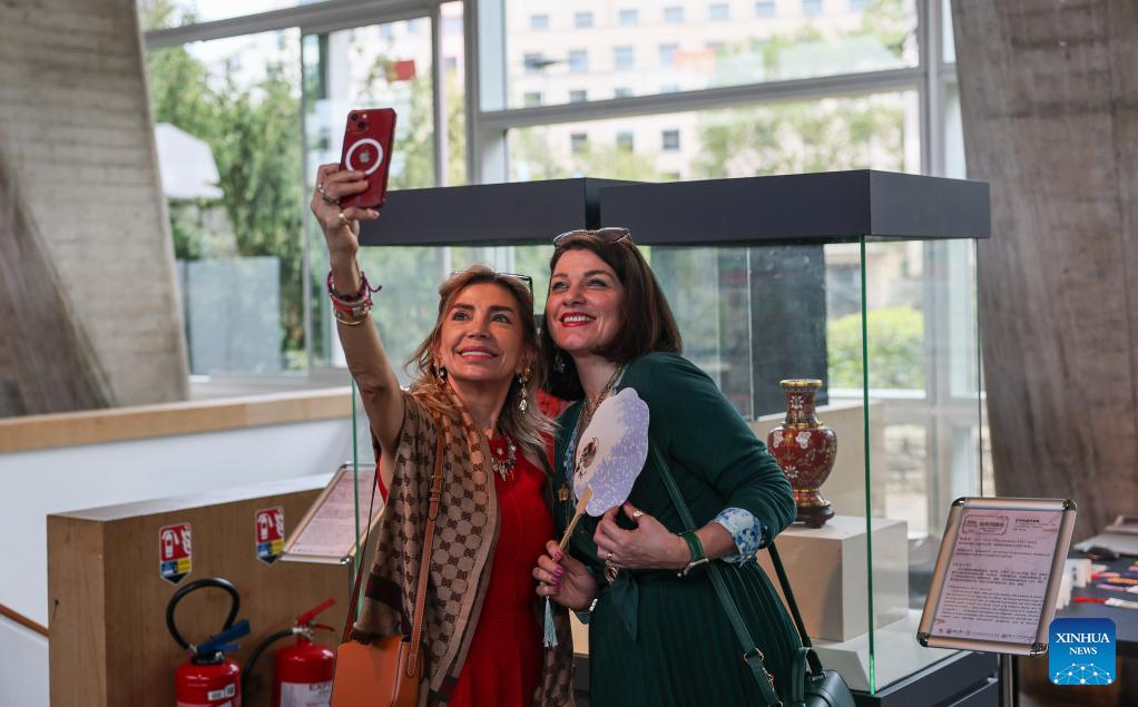 Guests take selfies during a celebration marking the United Nations (UN) Chinese Language Day at the headquarters of the UN Educational, Scientific and Cultural Organization (UNESCO) in Paris, France, April 16, 2026. (Xinhua/Wu Huiwo)