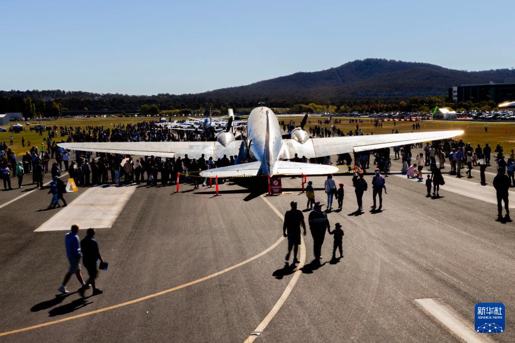 Visitors view an aircraft during the Canberra Airport Open Day in Canberra, Australia, on April 18, 2026. (Photo by Chu Chen/Xinhua)