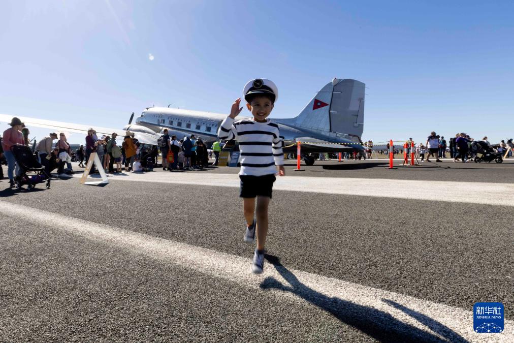 A boy is seen during the Canberra Airport Open Day in Canberra, Australia, April 18, 2026. (Photo by Chu Chen/Xinhua)