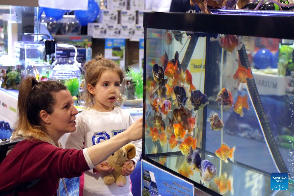 Visitors look at ornamental fish at the Sofia Zoo Expo 2026 in Sofia, Bulgaria, April 18, 2026. The Sofia Zoo Expo 2026 is scheduled from April 17 to 19 at the Inter Expo Center in Sofia. (Xinhua/Yao Yulin)