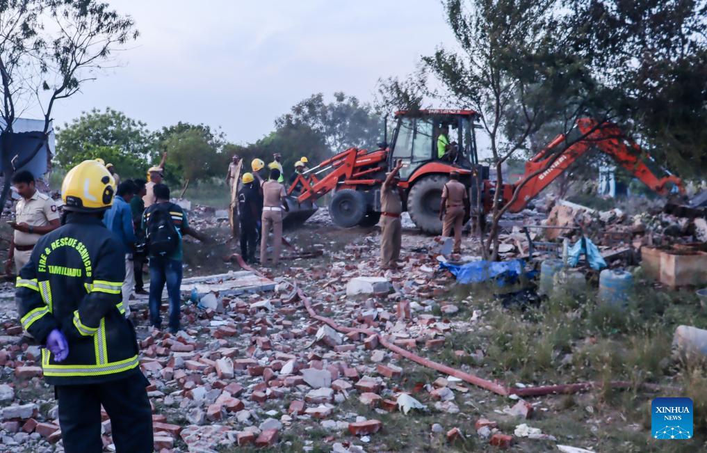 Rescuers work at the site of a blast at a firecracker factory in Virudhunagar district of Tamil Nadu, India, April 19, 2026. At least 21 people were killed and six others injured Sunday in a blast at a firecracker factory in the southern Indian state of Tamil Nadu, state-run broadcaster All India Radio (AIR) reported. (IANS via Xinhua)