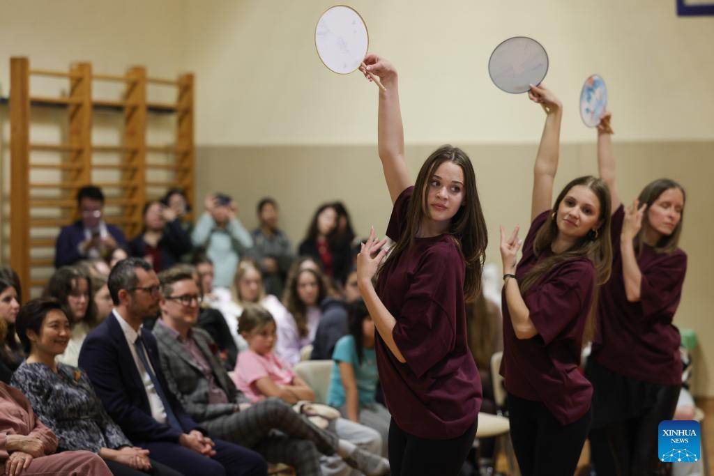 Students perform during an event marking the International Chinese Language Day at a high school in Celje, Slovenia, April 20, 2026. (Photo by Zeljko Stevanic/Xinhua)