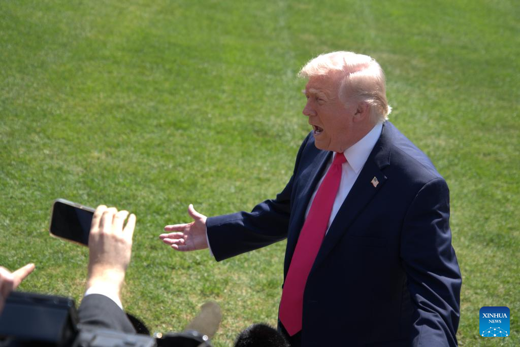 U.S. President Donald Trump speaks to the press on the South Lawn of the White House in Washington, D.C., the United States, April 16, 2026. (Photo: Xinhua)