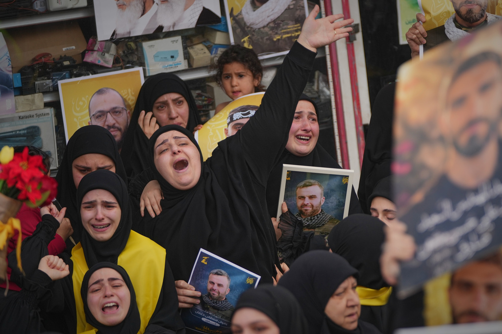 Women mourn during a mass funeral procession for Hezbollah fighters killed before the ceasefire in the war with Israel in the southern village of Kfar Sir, Lebanon, Tuesday, April 21, 2026. (Photo: AP)