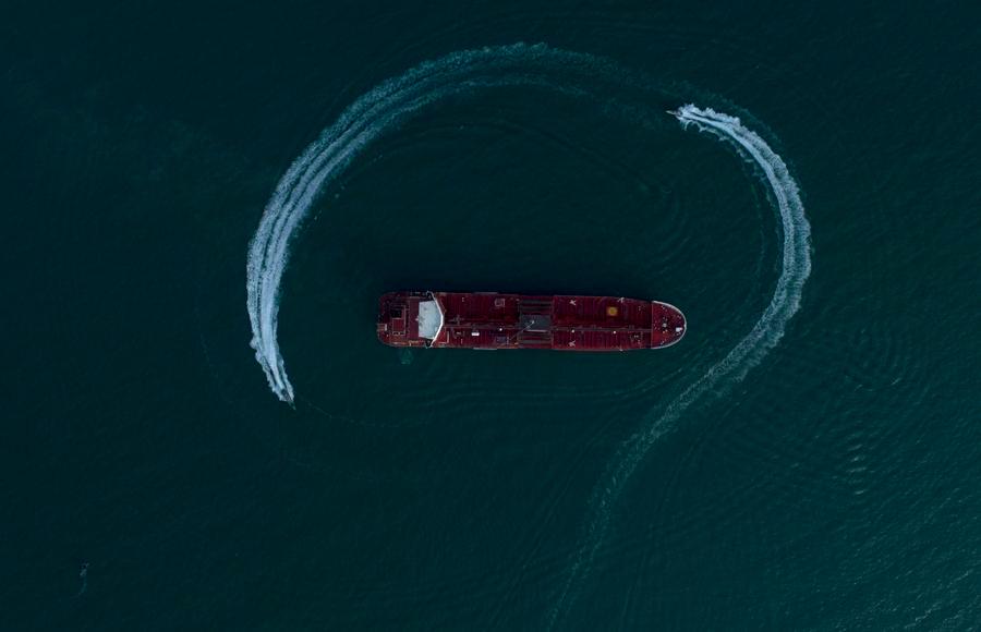 The photo released on July 21, 2019 shows the British oil tanker "Stena Impero" surrounded by speedboats of Iran's Islamic Revolution Guard Corps (IRGC) in the Strait of Hormuz, Iran. (Photo: Xinhua)