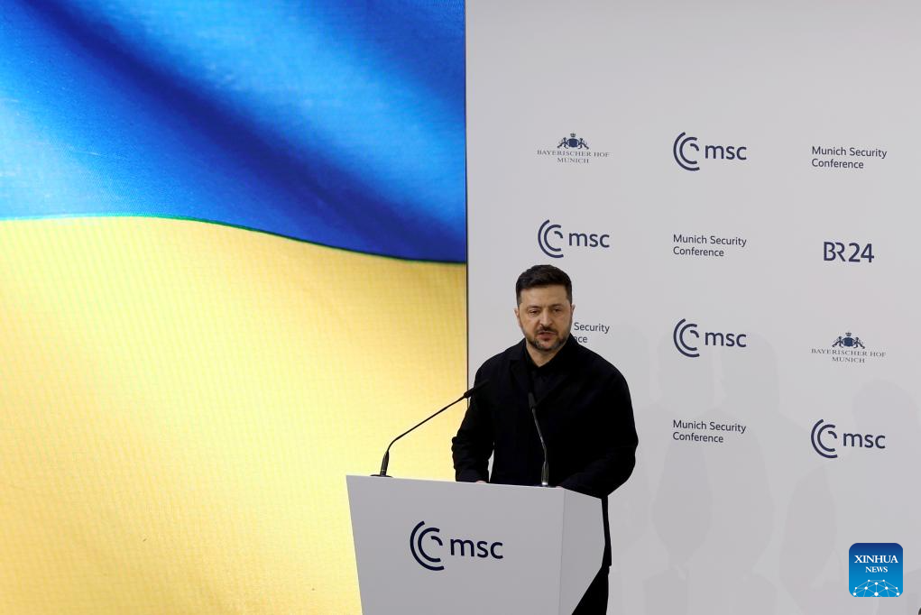 Ukrainian President Volodymyr Zelensky speaks during the 62nd Munich Security Conference (MSC) in Munich, Germany, Feb. 14, 2026. (Photo: Xinhua)