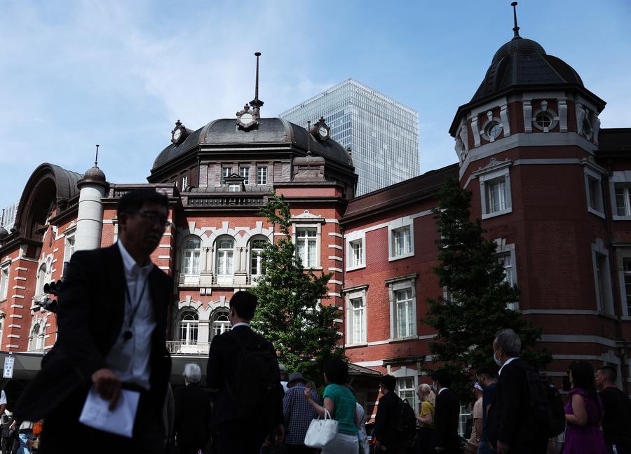 Pedestrians walk across a street near Tokyo Station in Tokyo, Japan, May 15, 2025. (Photo: Xinhua)