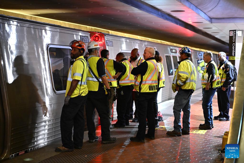 Washington Metropolitan Area Transit Authority employees work on the site of a collision of a metro train and a work vehicle at Metro Center in Washington, D.C., the United States, on April 22, 2026. Eleven people were injured early Wednesday after a work vehicle collided with a metro train in downtown Washington, D.C., local authorities said. (Photo: Xinhua)