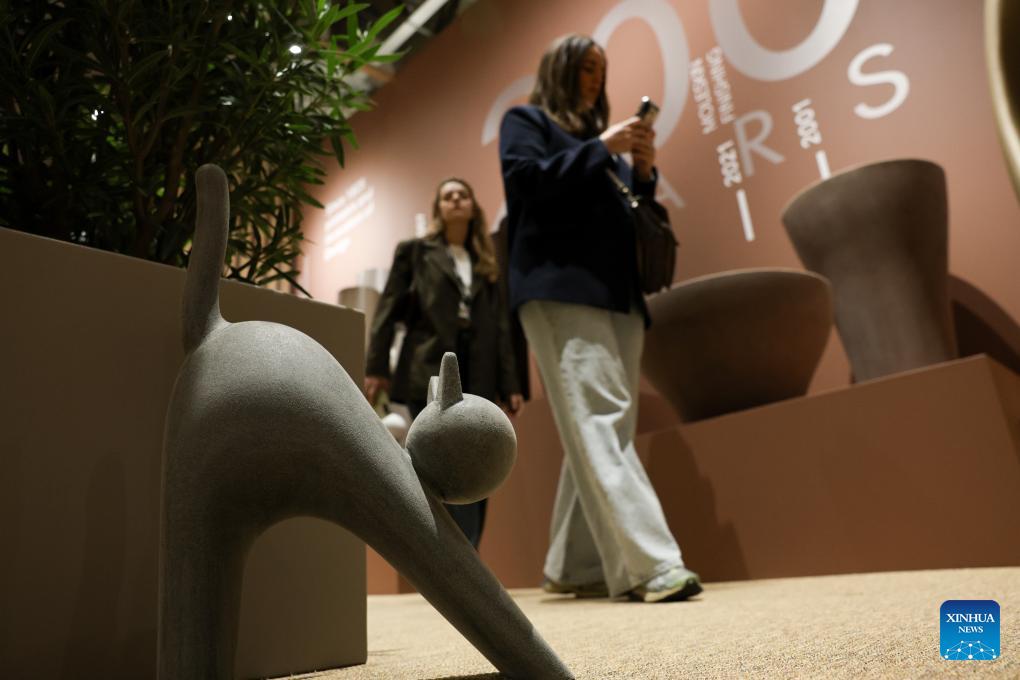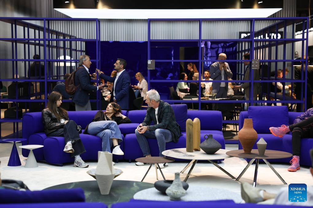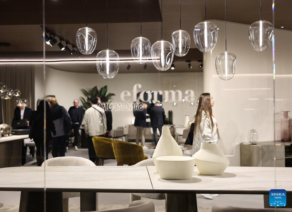 People visit the 64th Salone del Mobile at Fiera Milano Rho exhibition center in Milan, Italy, April 22, 2026. The 64th Salone del Mobile, an international furniture and design industry event, is held here from April 21 to 26. (Xinhua/Li Jing)