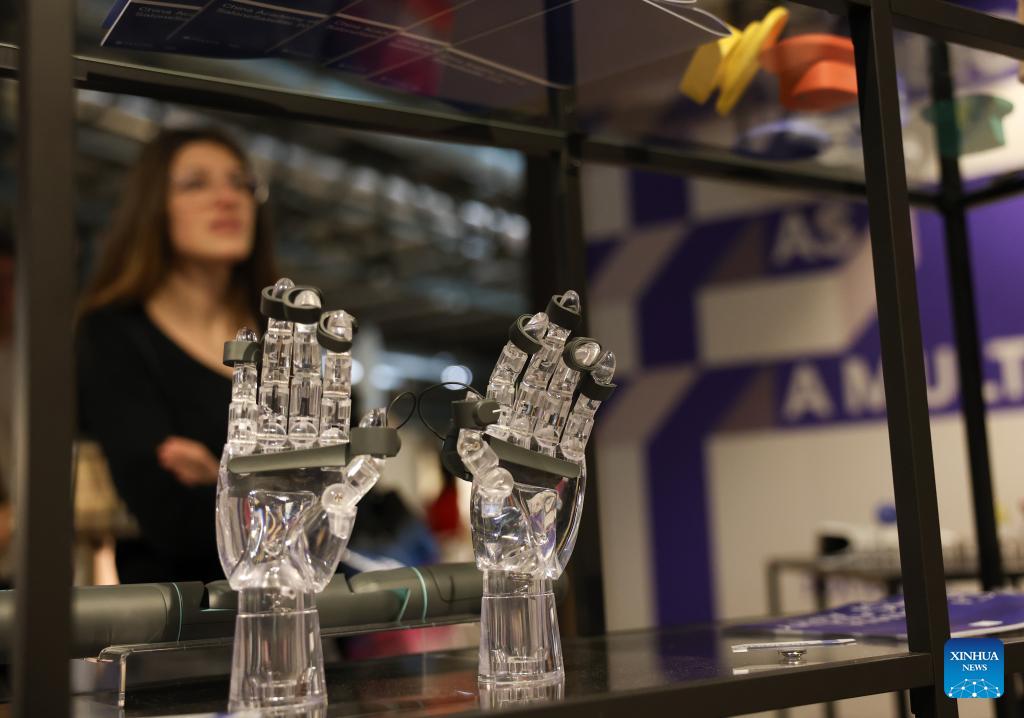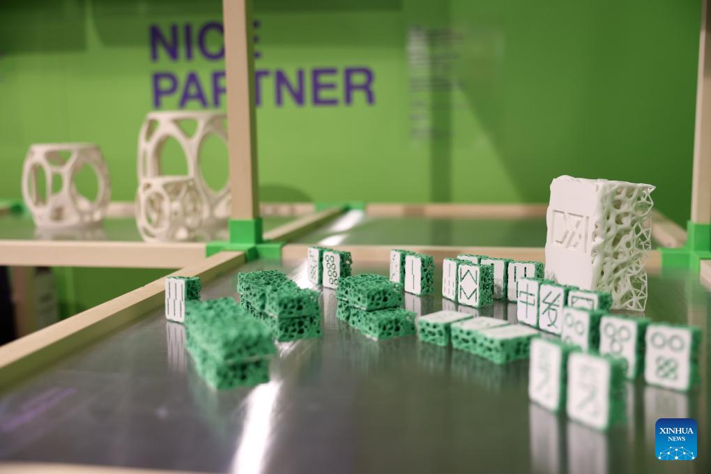 A 3D-printed design by Tongji University is seen during the 64th Salone del Mobile at Fiera Milano Rho exhibition center in Milan, Italy, April 22, 2026. Chinese designs and products are drawing wide attention at the ongoing Salone del Mobile, or the Milan's furniture fair, a highlight of the Milan Design Week. (Xinhua/Li Jing)