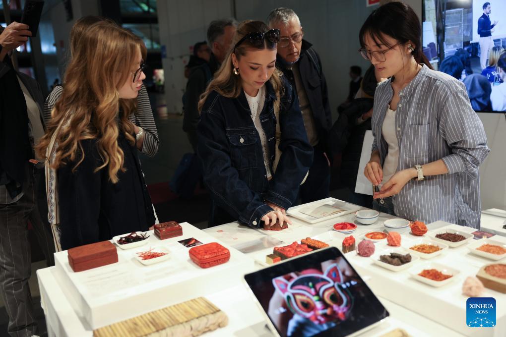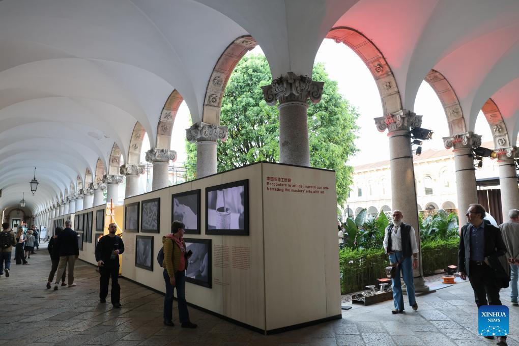 Visitors view an exhibition on China's intangible cultural heritage crafts during Milan Design Week at the University of Milan in Milan, Italy, April 20, 2026. Chinese designs and products are drawing wide attention at the ongoing Salone del Mobile, or the Milan's furniture fair, a highlight of the Milan Design Week. (Xinhua/Li Jing)