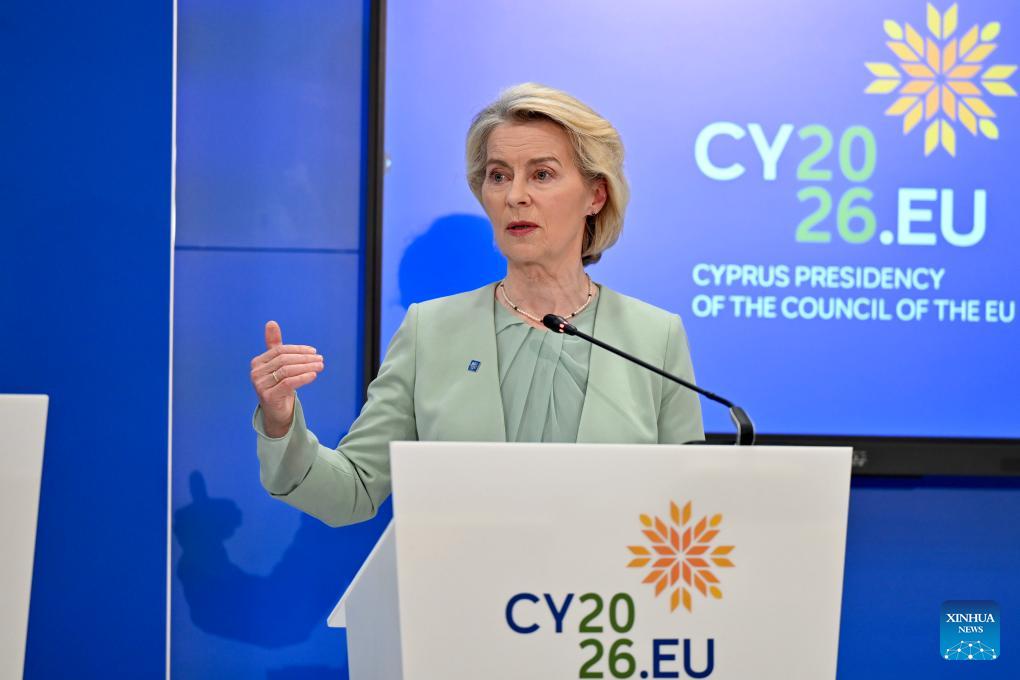 European Commission President Ursula von der Leyen attends a press conference after an EU summit in Nicosia, Cyprus, April 24, 2026. (Photo: Xinhua)