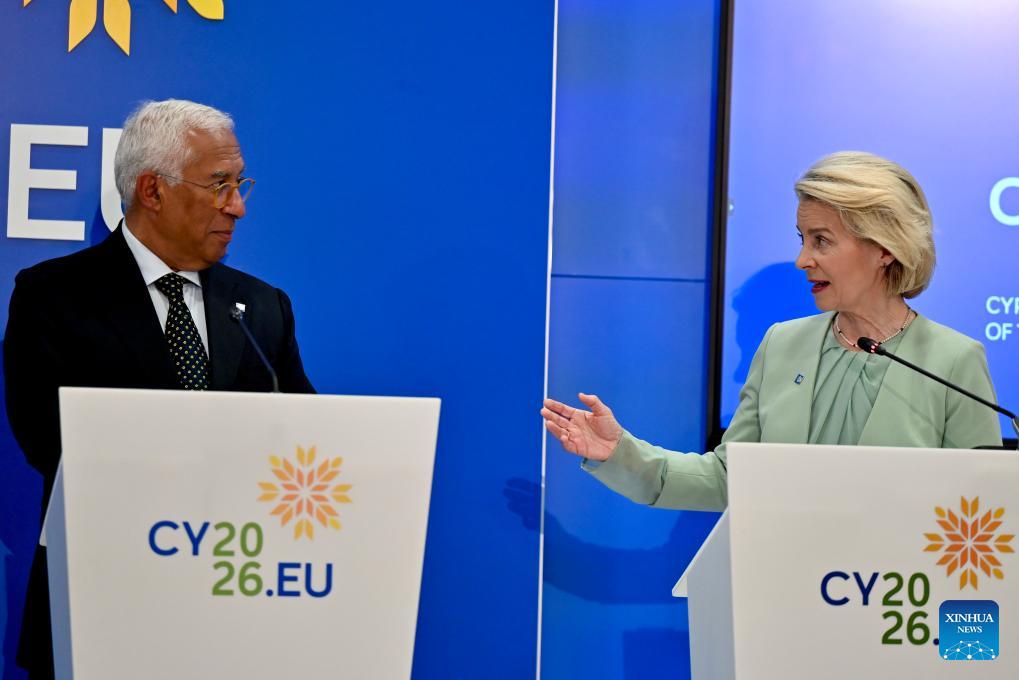 European Council President Antonio Costa (L) and European Commission President Ursula von der Leyen attend a press conference after an EU summit in Nicosia, Cyprus, April 24, 2026. (Photo: Xinhua)