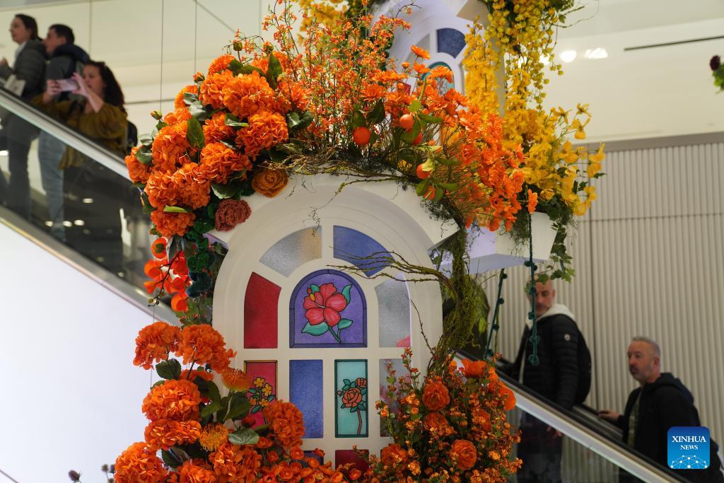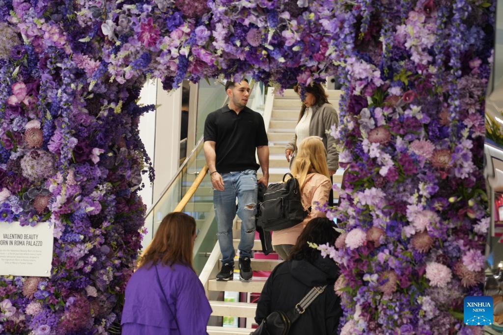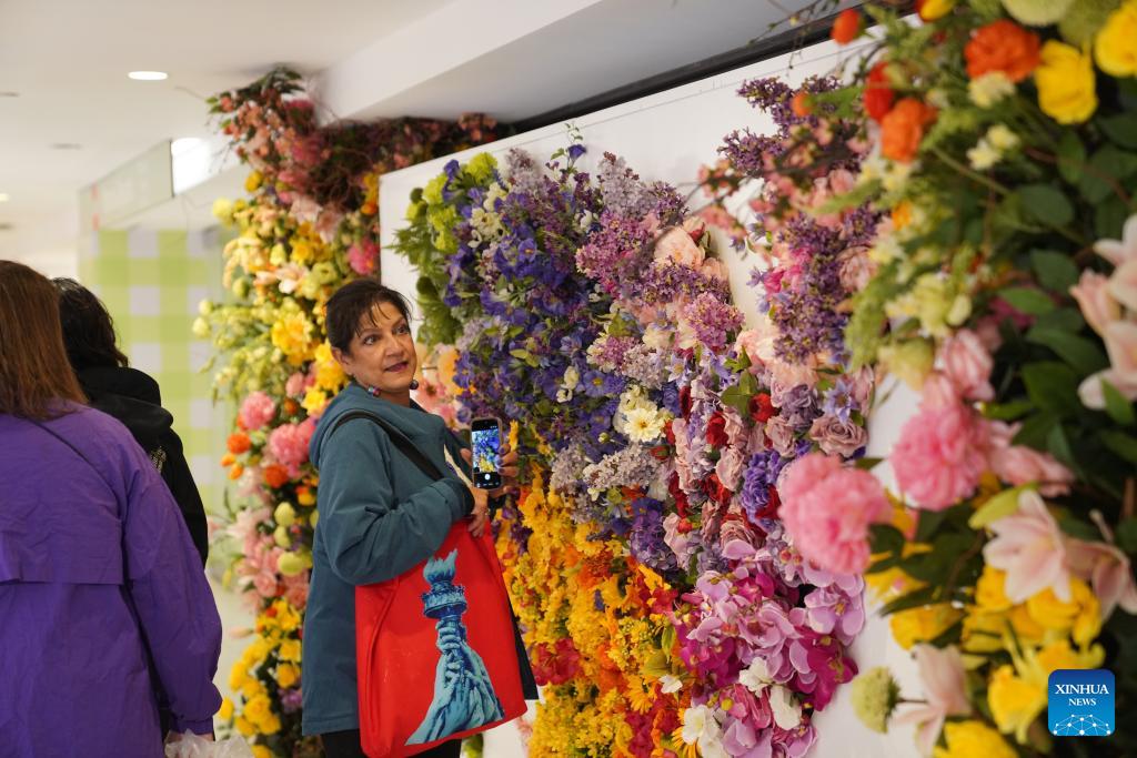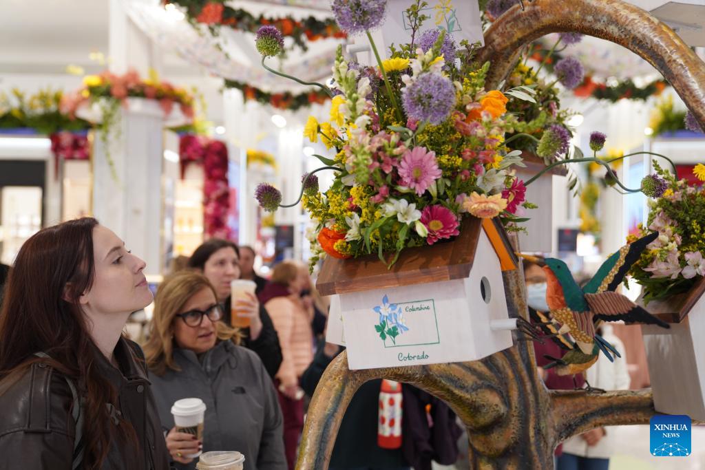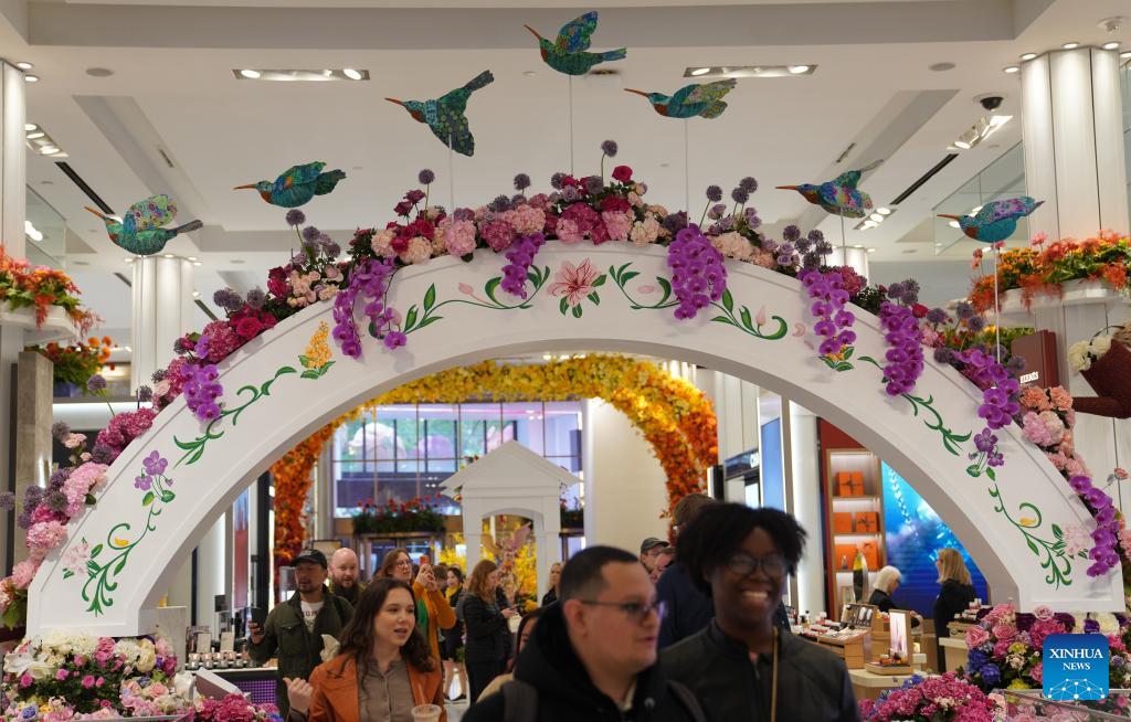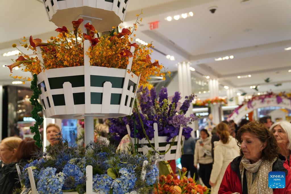 People visit the Macy's Flower Show in New York, the United States, on April 25, 2026. Featuring thousands of flowers and plants with scenic garden installations, the flower show is held here from April 23 to May 10. (Xinhua/Zhang Fengguo)