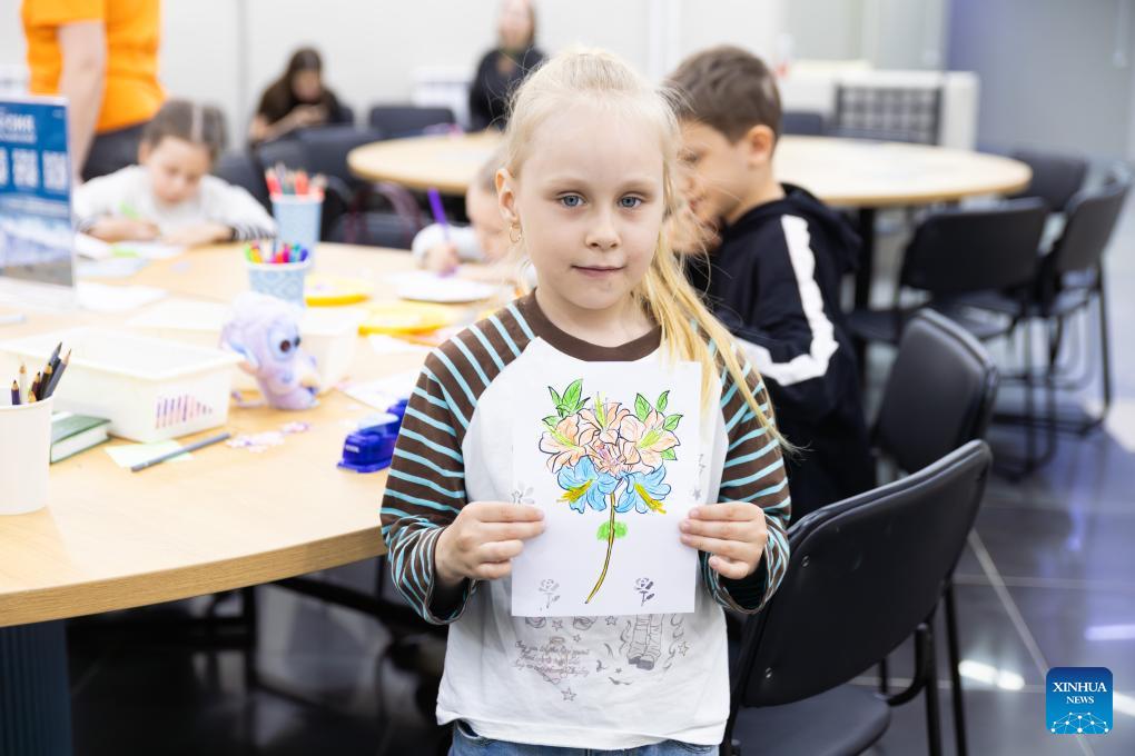 A young girl displays her drawing of rhododendrons during the rhododendron festival in Vladivostok, Russia, April 25, 2026. The rhododendron festival was held here on Saturday to promote rhododendron-themed tourism and enhance its appeal to tourists. (Photo by Andrey Matveenko/Xinhua)