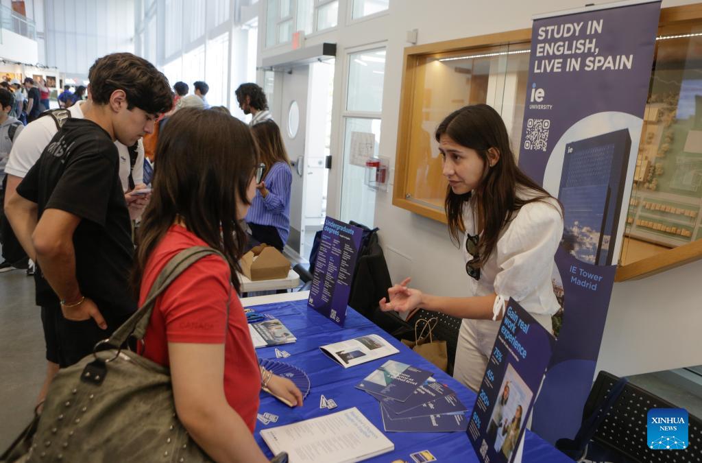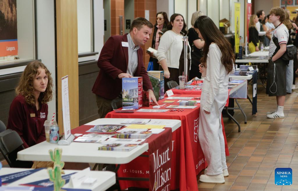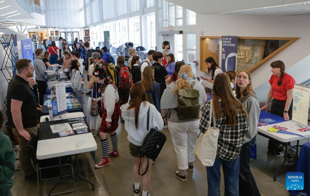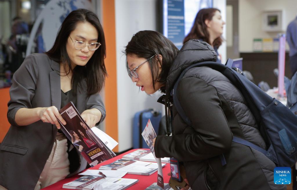 People visit the Global Universities Fair in Vancouver, British Columbia, Canada, April 25, 2026. Representatives from different universities and colleges from multiple countries attended the event, offering students and parents opportunities to explore international higher education options and admission pathways. (Photo by Liang Sen/Xinhua)