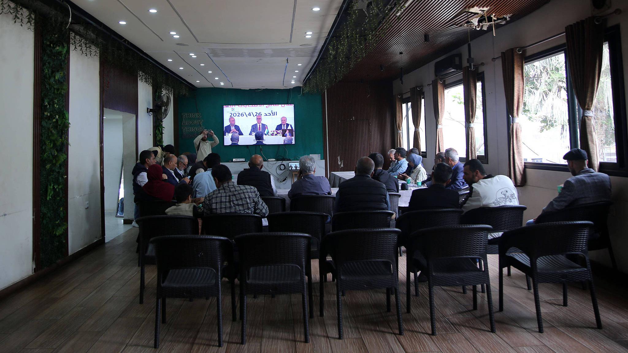 The Palestinian Central Elections Commission announces the results of the municipal elections in the city of Deir al-Balah in the central Gaza Strip, April 26, 2026. (Photo: VCG)