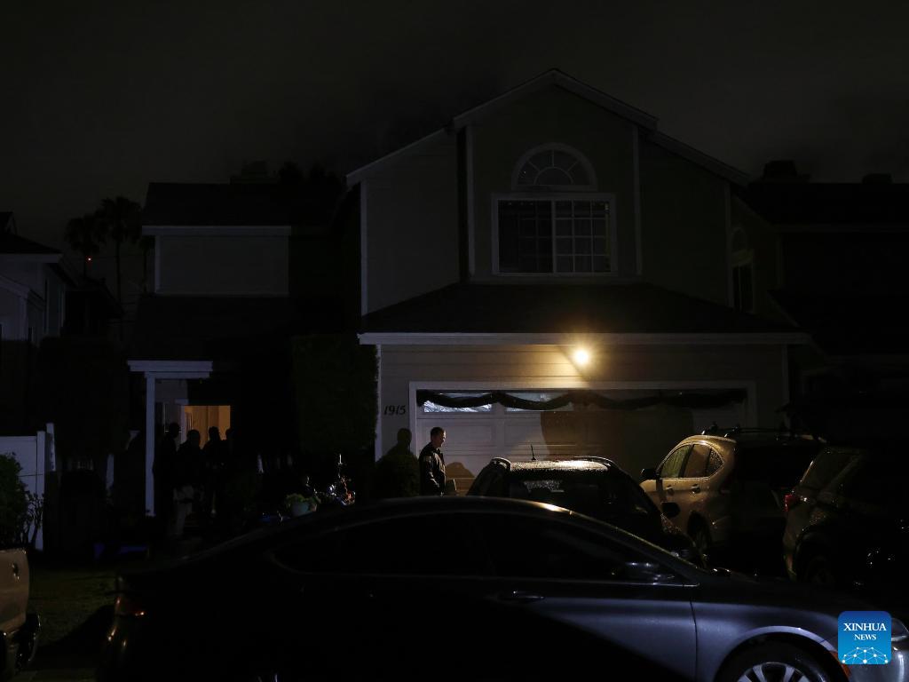 Law enforcement agents work near a home connected to Cole Allen, the suspect at the White House Correspondents' Dinner shooting, in Torrance, California, the United States, on April 26, 2026. (Photo by Qiu Chen/Xinhua)