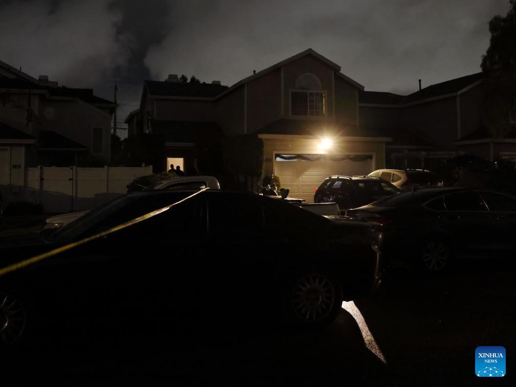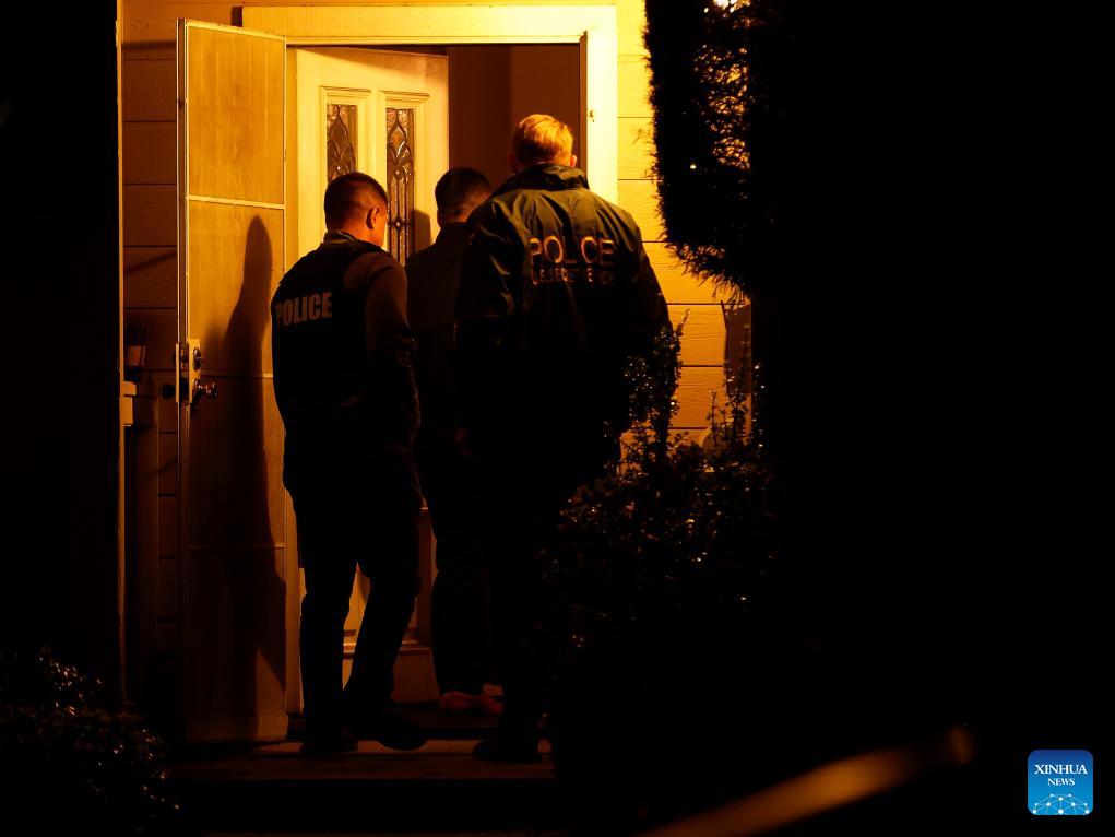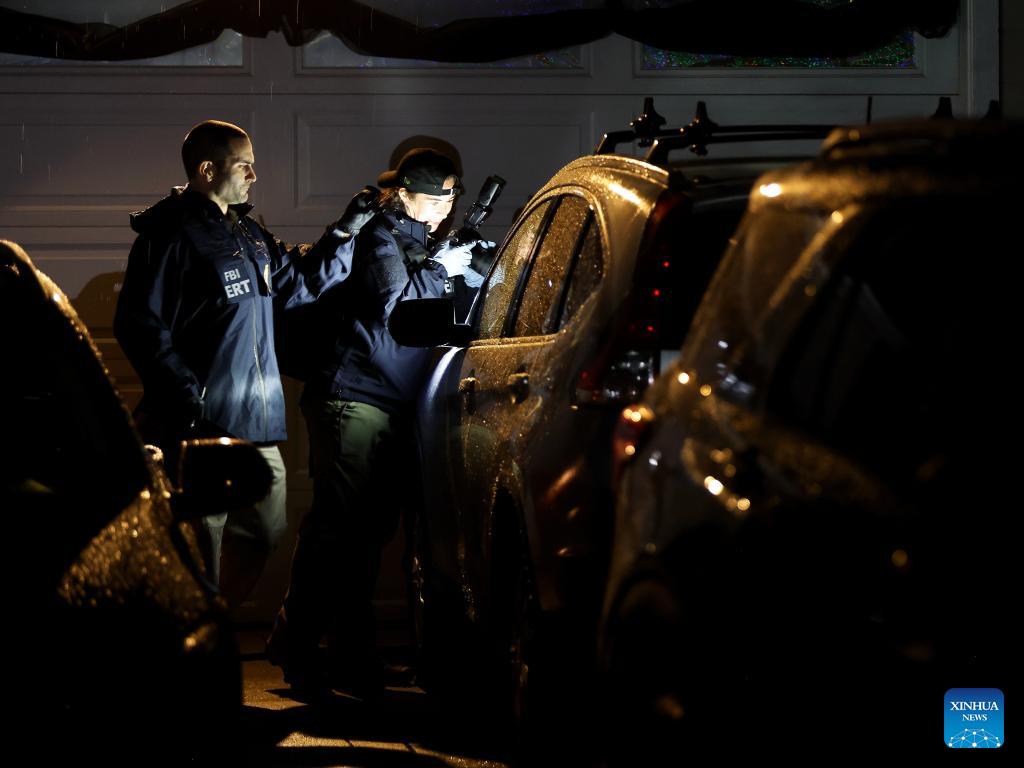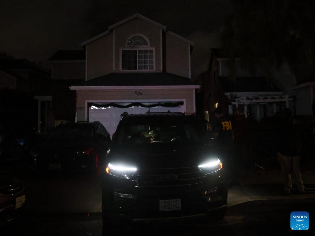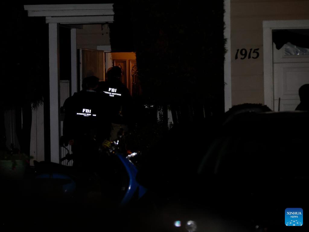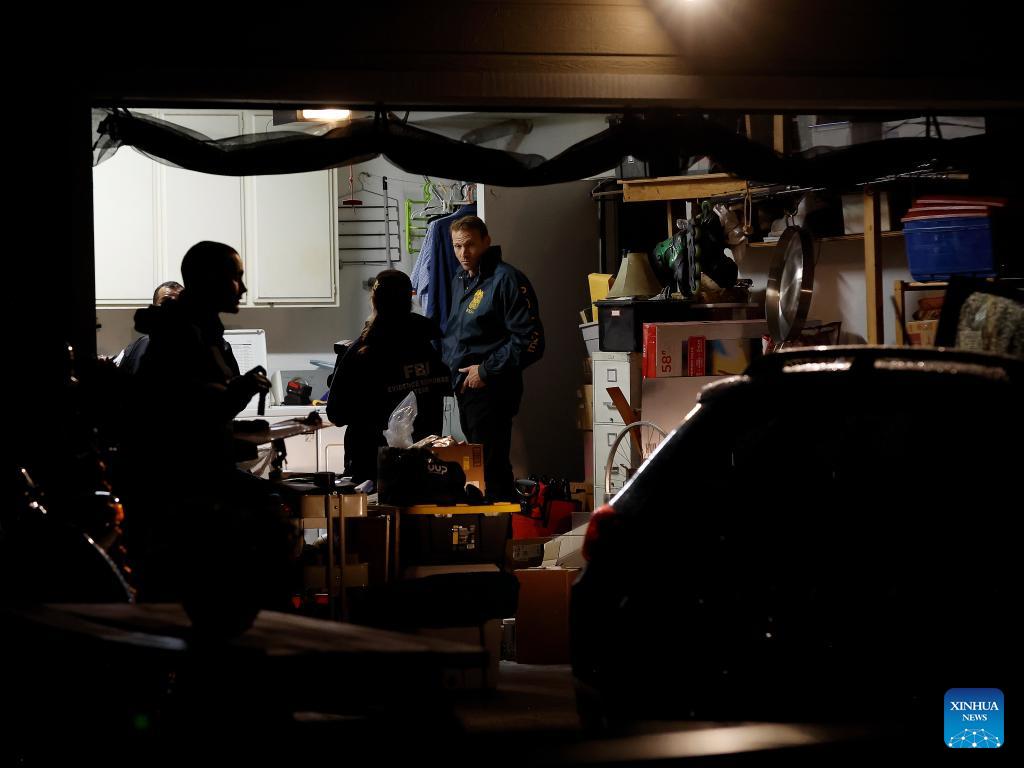 Law enforcement agents collect evidence from a home connected to Cole Allen, the suspect at the White House Correspondents' Dinner shooting, in Torrance, California, the United States, on April 26, 2026. (Photo by Qiu Chen/Xinhua)