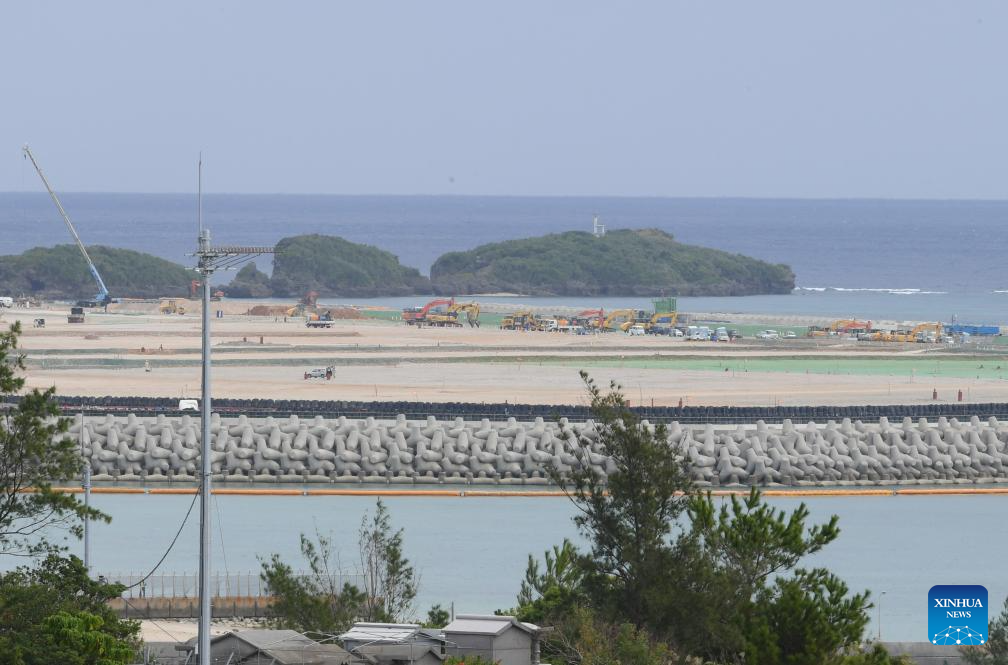 This photo taken on Nov. 25, 2023 shows the construction site of U.S. base in Henoko coastal area in Nago, Okinawa, Japan. (File photo: Xinhua)