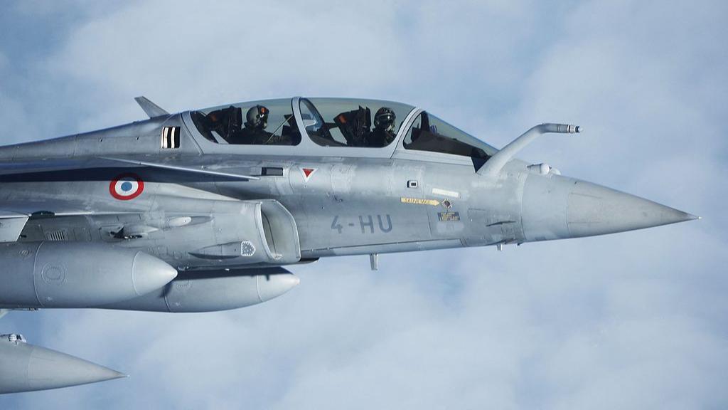 A French Air Force Dassault Rafale B aircraft is seen during a flight display, Crozon, France, March 2, 2026. /VCG
