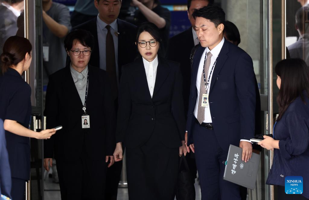 Kim Keon-hee (C), wife of former South Korean President Yoon Suk-yeol, is seen at the Seoul Central District Court in Seoul, South Korea, Aug. 12, 2025. (Photo: Xinhua)