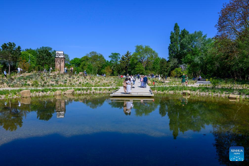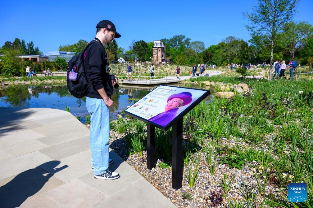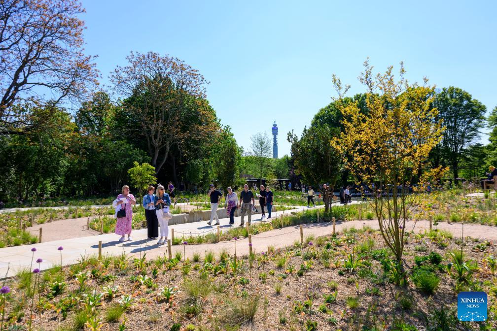 People visit the Queen Elizabeth II Garden in Regent's Park in London, Britain, on April 27, 2026. The two-acre garden opened to the public in central London on Monday in memory of Queen Elizabeth II. (Photo by Ray Tang/Xinhua)