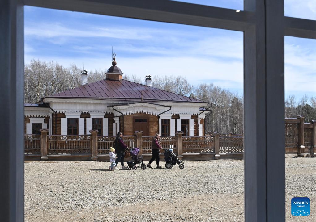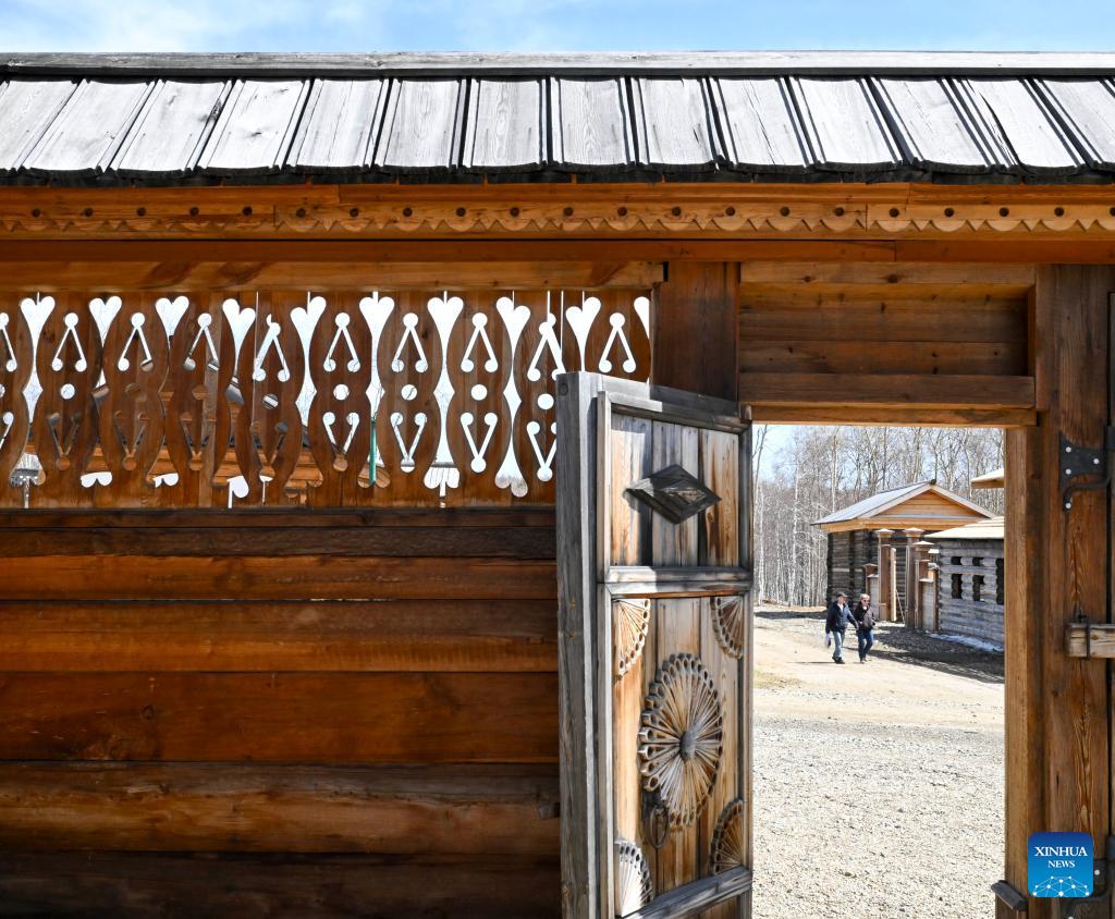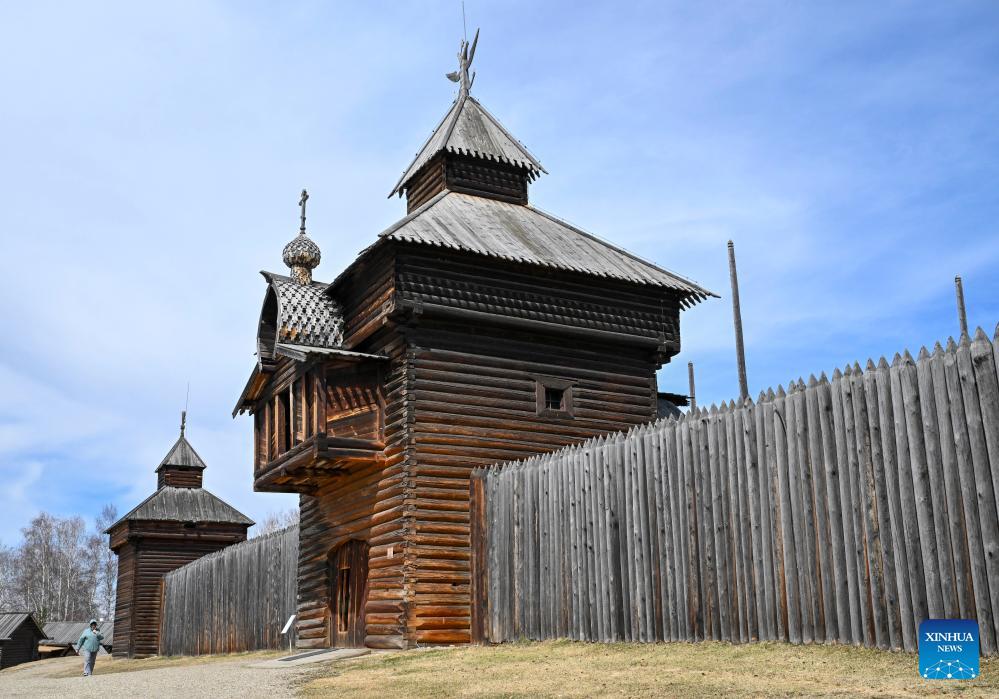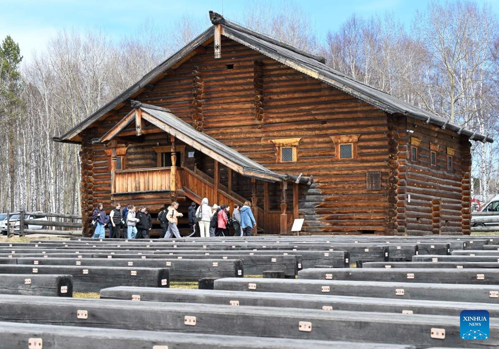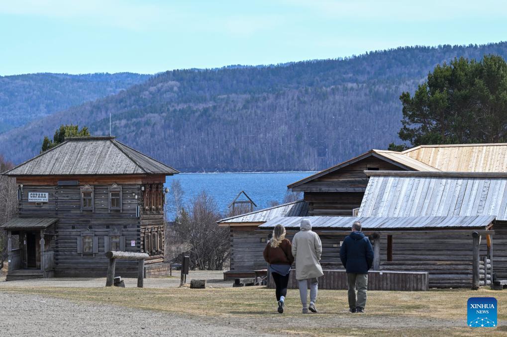 Tourists visit the Taltsy Architectural and Ethnographic Museum in Irkutsk, Russia, on April 28, 2026. (Xinhua/Hao Jianwei)