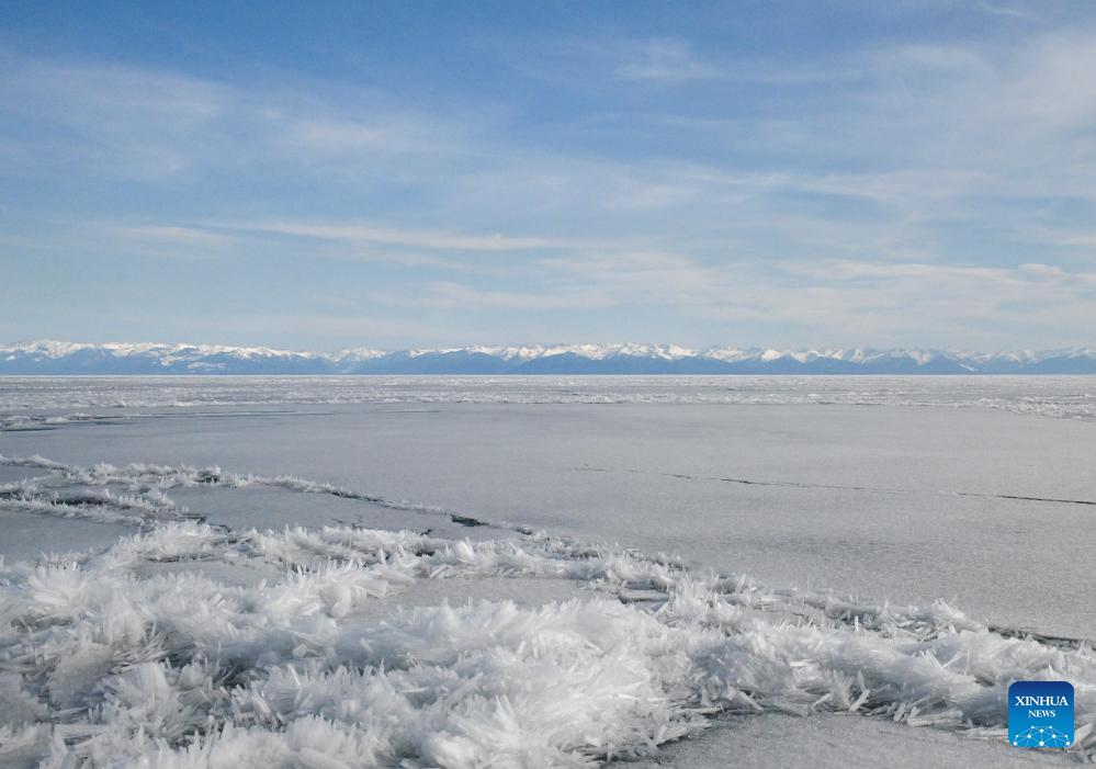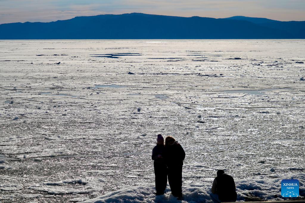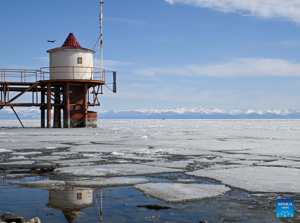 This photo taken on April 28, 2026 shows a view of Lake Baikal in Listvyanka, Russia. (Xinhua/Hao Jianwei)