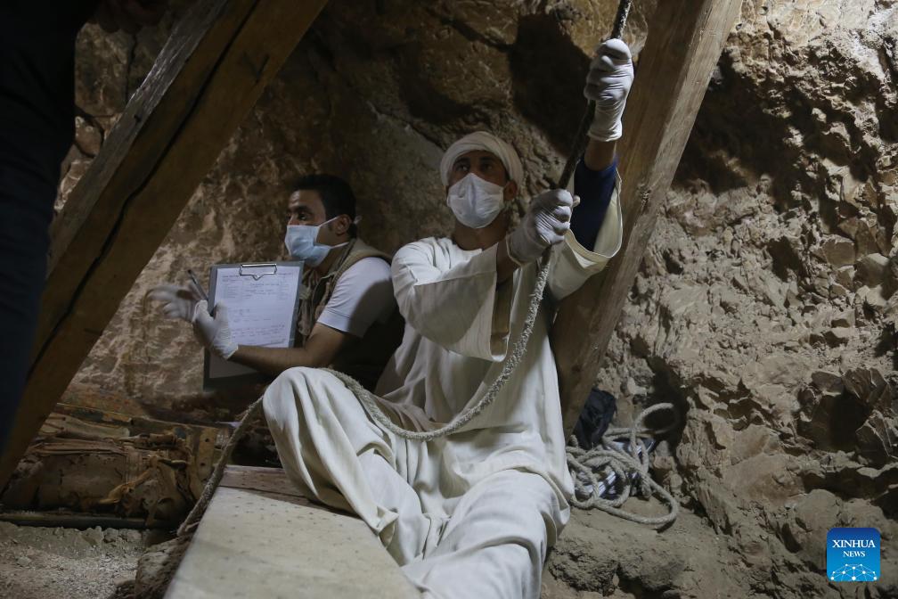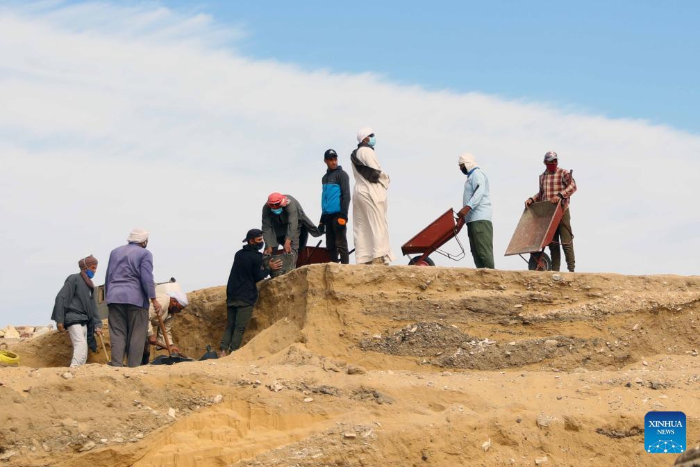 Egyptian workers work in archaeological site on the West Bank of Luxor, Egypt on April 28, 2026. (Radwan Abu Al-Majd/Handout via Xinhua)
