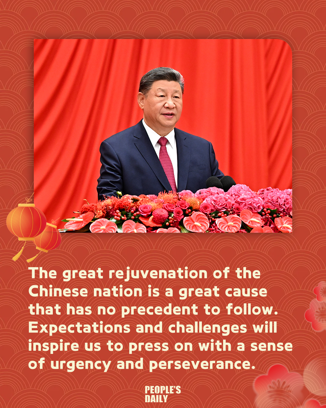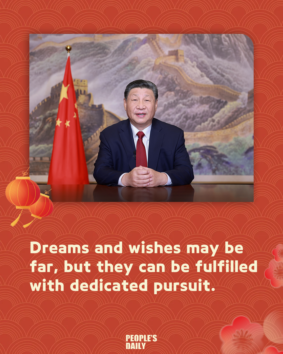 The Chinese New Year, which starts on February 17 this year, invites renewed strength, confidence and momentum. These remarks from President Xi Jinping echo these themes, offering encouragement and strength for the year ahead. (Produced by Huang Jingjing, Liu Haozhe, Li Zhuoman and Chuchu)