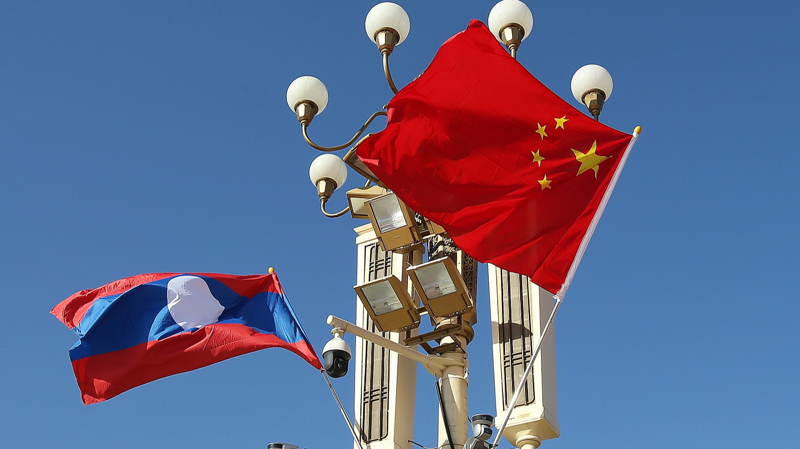 The national flags of China and Laos. (Photo: CFP)
